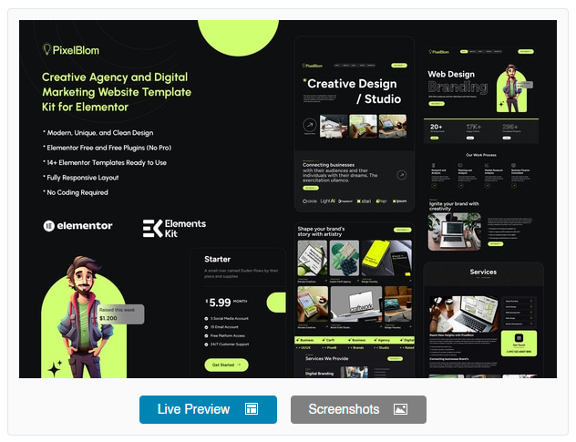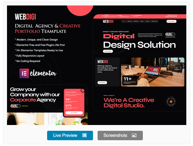 Digital Marketing, Web Development, Creative Elementor Template Kit